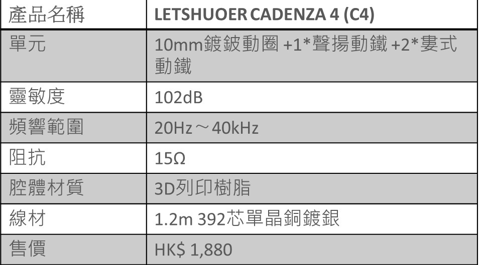 Cadenza 4是一款搭載四個單元的入耳式耳機,結合了10mm鍍鈹動圈和三個動鐵單元的卓越配置!無論是價格還是性能,都帶給你旗艦級的音響體驗。
