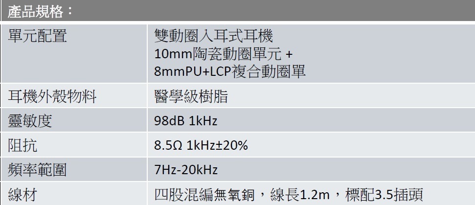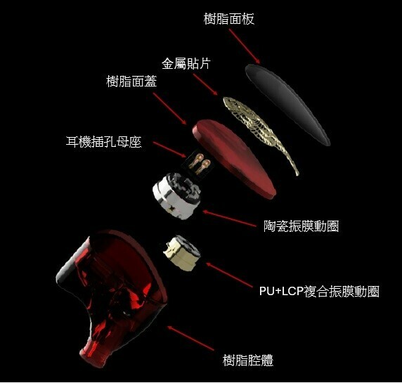 10mm陶瓷動圈 + 8mmPU+LCP複合動圈單元雙動圈入耳式耳機