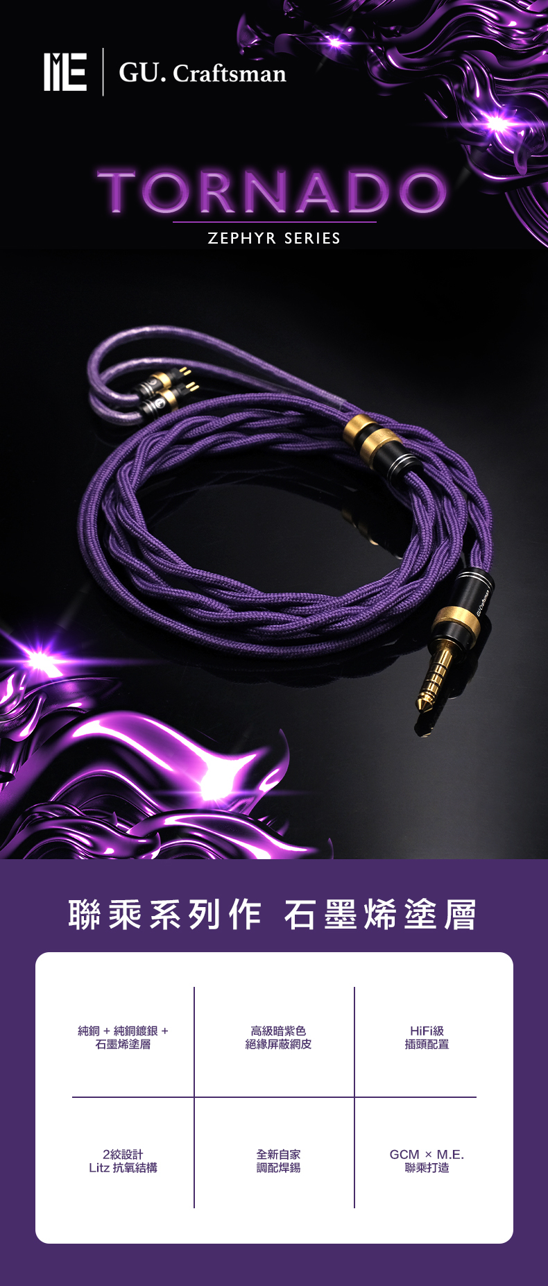 ZEPHYR 系列,GU. Craftsman × M.E. Studio 聯合打造的全新系列,Zephyr 為和風,同時亦代表希臘神話當中的西風之神。本系列從包裝以至線材上都運用了日式和風風格創作,包裝的竹盒設計、線材結構、線材外觀、配件插頭,都本著匠人工藝的認真製作,一絲不苟的從每一部分逐一仔細刻劃,這亦是新系列所追求的匠人態度。
